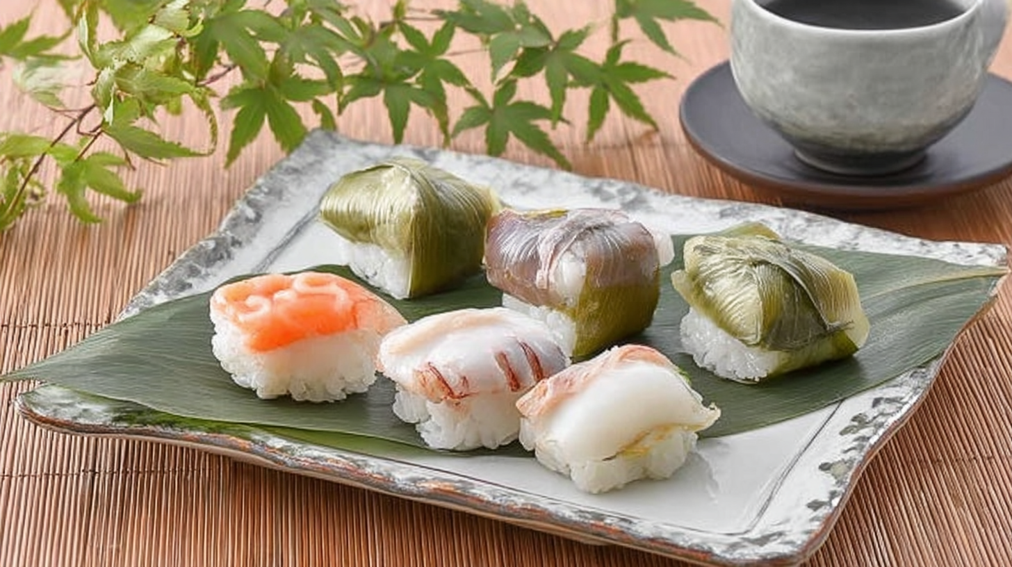 A beloved local delicacy, kakinoha-zushi is sushi carefully wrapped in fragrant persimmon leaves, combining the freshness of vinegared rice and fish with a touch of regional