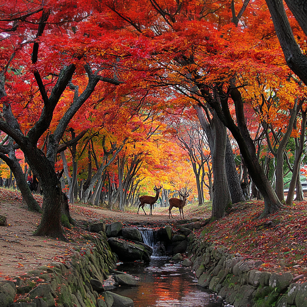 See Nara’s ancient temples beautifully wrapped in brilliant autumn hues, as vibrant reds, oranges, and yellows transform the landscape into a breathtaking tapestry. The crisp autumn air and colorful foliage create an enchanting atmosphere that highlights the timeless charm of these historic sites. Walking through temple grounds surrounded by fall colors offers a peaceful and memorable experience for visitors.